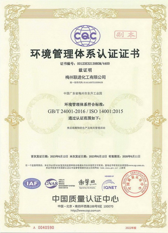 ISO14001體系證書(shū)—中文
